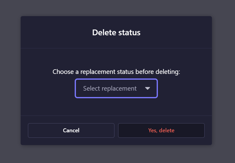Upon deleting you will be prompted to choose replacement status. All the content with deleted status will then be updated to have the replacement status.