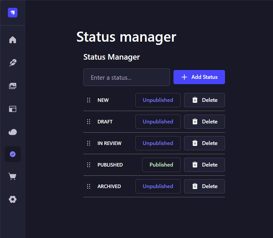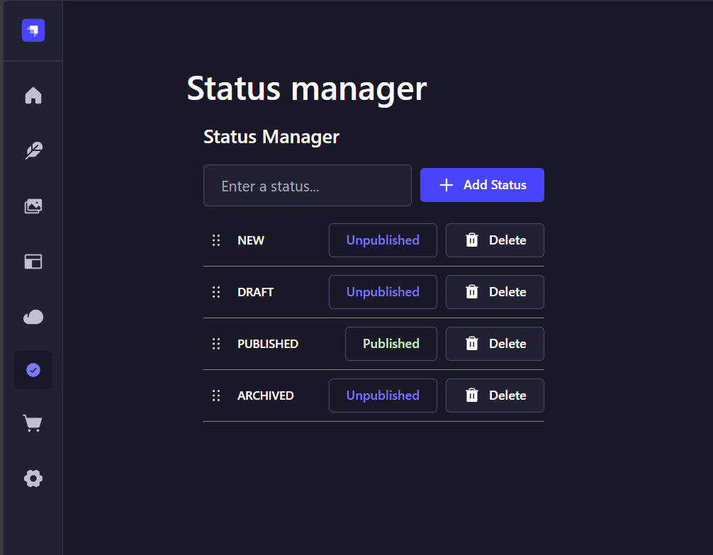 npm install @primershop/strapi-plugin-status-managerUsage