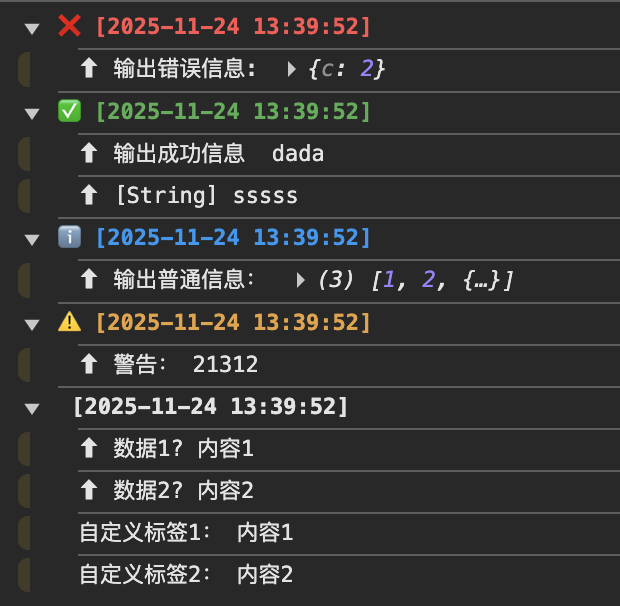 customLog('数据1?', '内容1', '数据2?', '内容2')在微信小程序中使用: