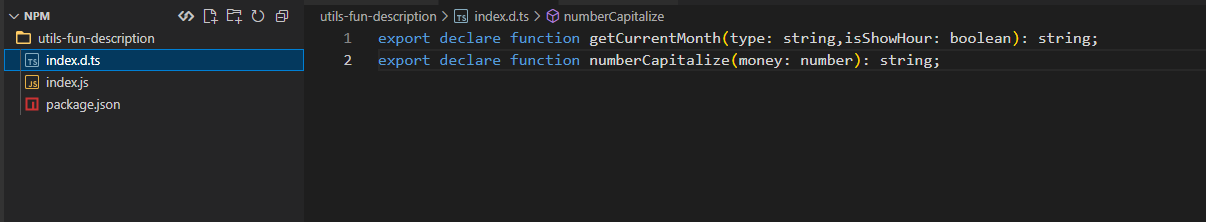- 最后需要在package.json里添加types: 'index.d.ts', 然后重新发布就有了